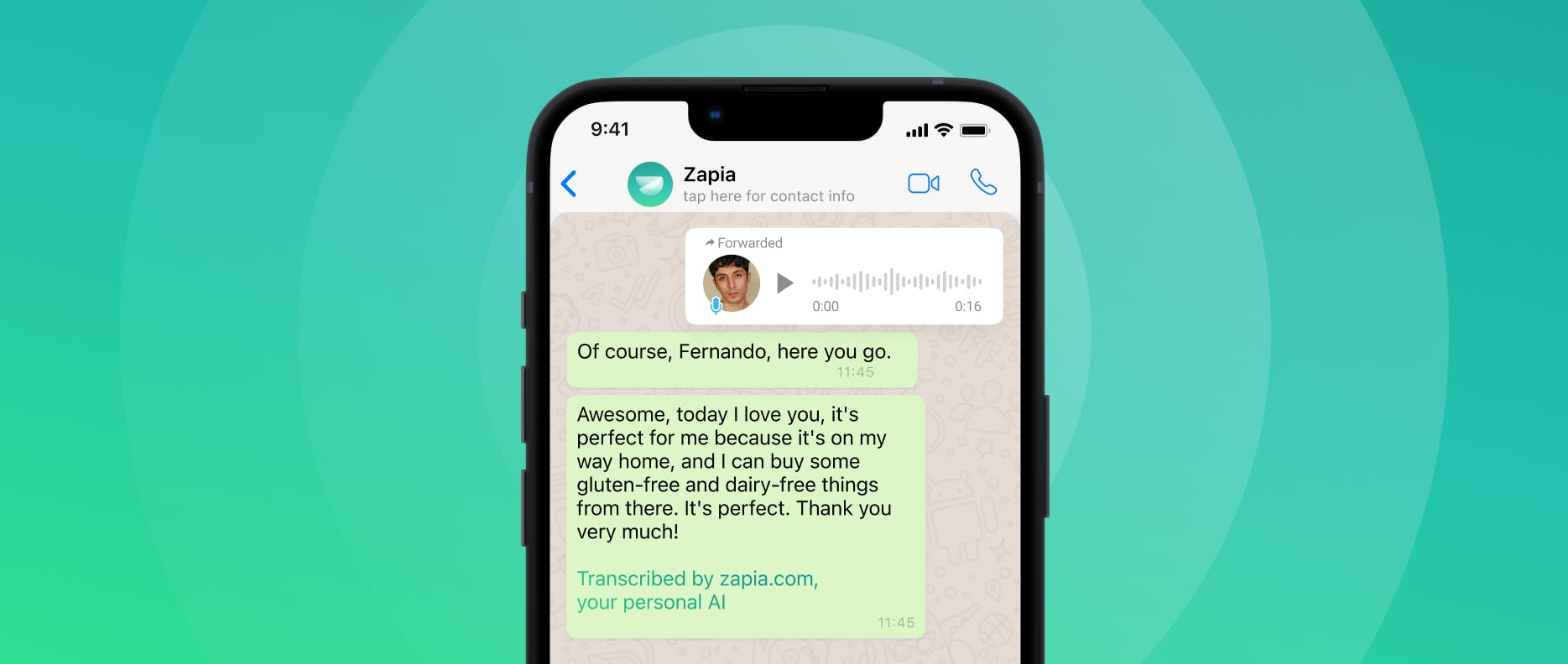 We all find it convenient to send WhatsApp audios, but often feel too lazy to listen to them. With Zapia, you can transcribe your WhatsApp voice messages easily, quickly, and for free.
