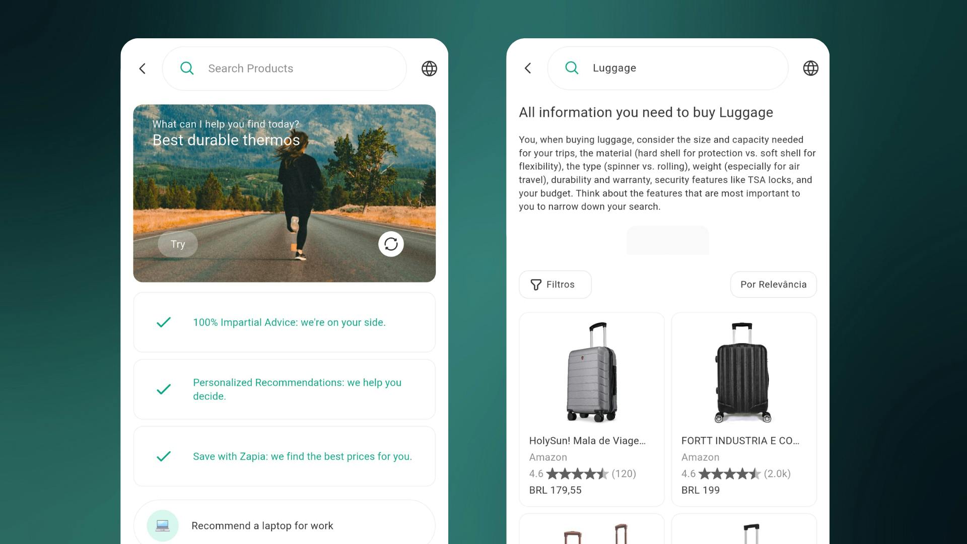 Looking for the best deal or that perfect product? The Zapia App gathers offers from multiple stores, so you can compare prices online all in one place, it’s quick and easy. Save time and money without having to open a bunch of tabs in your browser. Let our assistant show you the best, personalized deals.