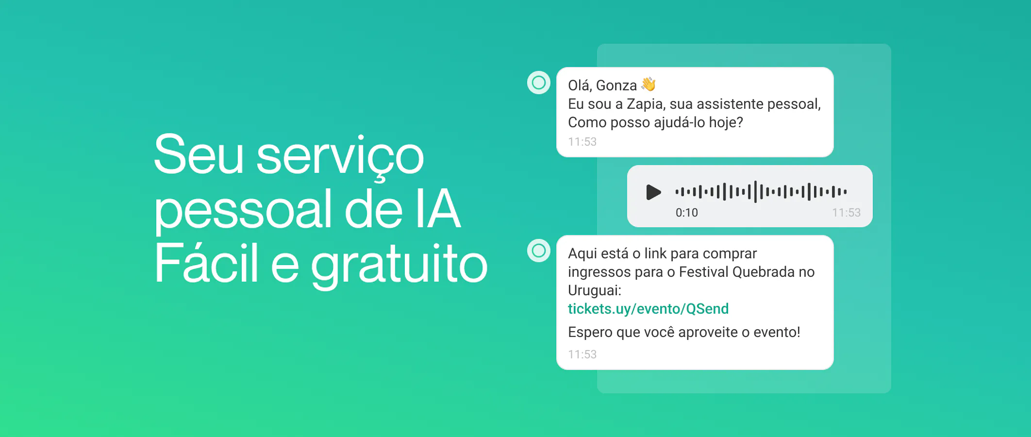 Ao contrário de outros serviços, você pode usar o Zapia de forma 100% gratuita. Disponibilizamos nosso produto aos nossos usuários com o objetivo de permitir o acesso às principais características de maneira gratuita.Quais outras coisas eu posso fazer com o Zapia?