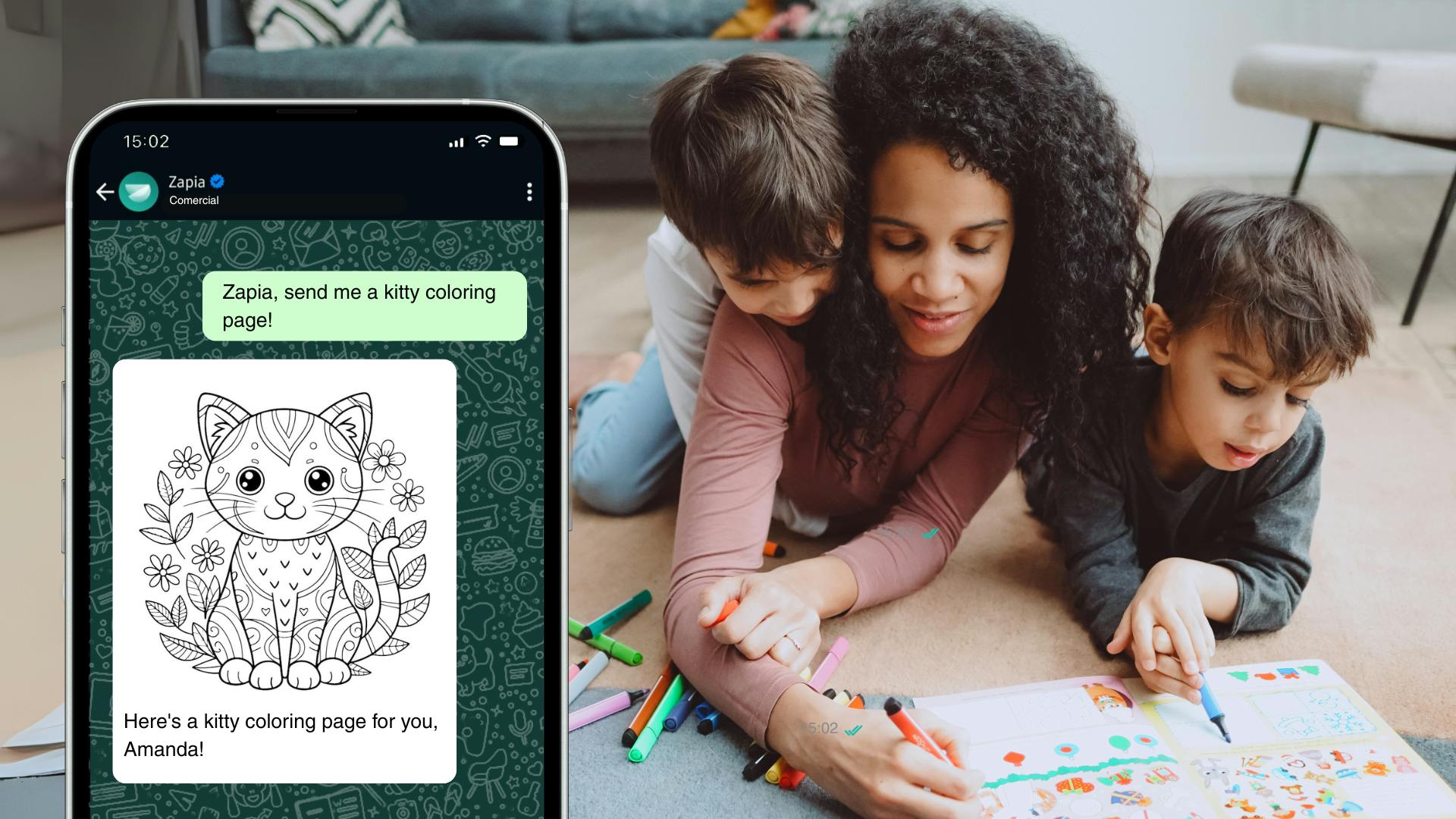 If home time requires a little more focus from the kids, Zapia can help! It can generate coloring pages that you can print and give to the little ones, keeping them focused and entertained. It’s a great solution for quiet time or a creative activity during the holidays.Example: "Zapia, send me a dinosaur coloring page to print" or "Zapia, send me a kitten drawing to color."