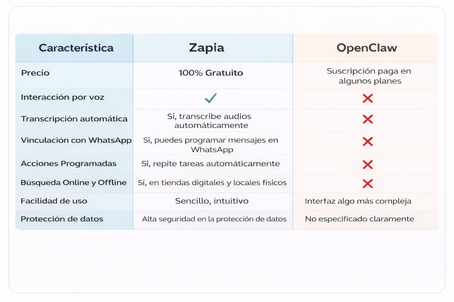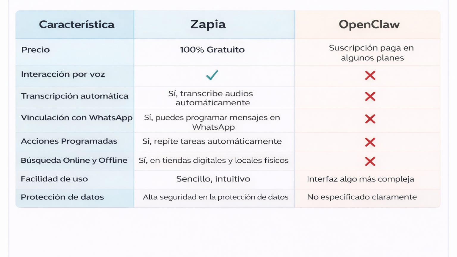 ¿Cómo se Compara Zapia con OpenClaw?